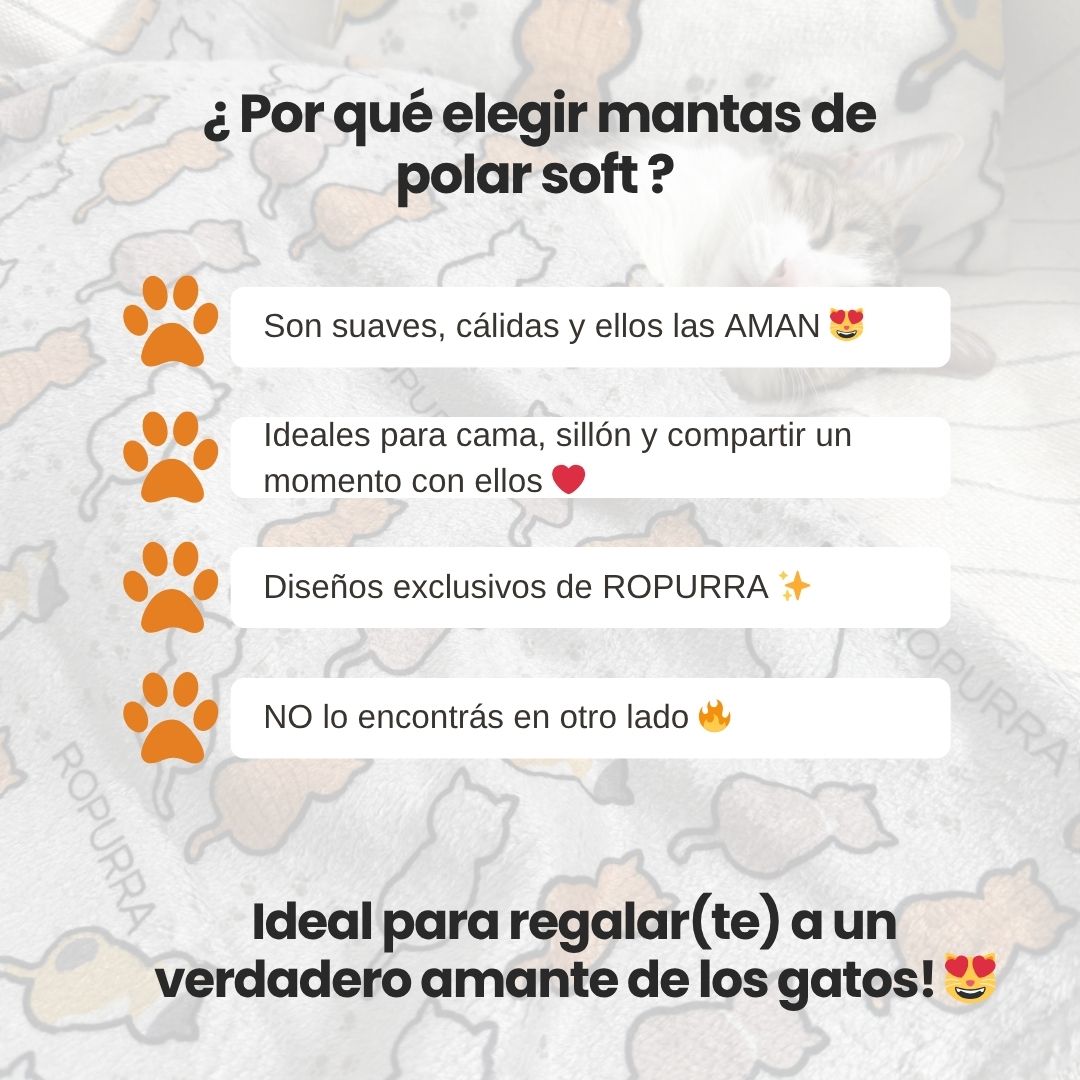 Nuestras Ropu mantas están confeccionadas en un suave polar soft, ideal para esta época ya que son super calentitas! Podés peinar y despeinar a los michis!